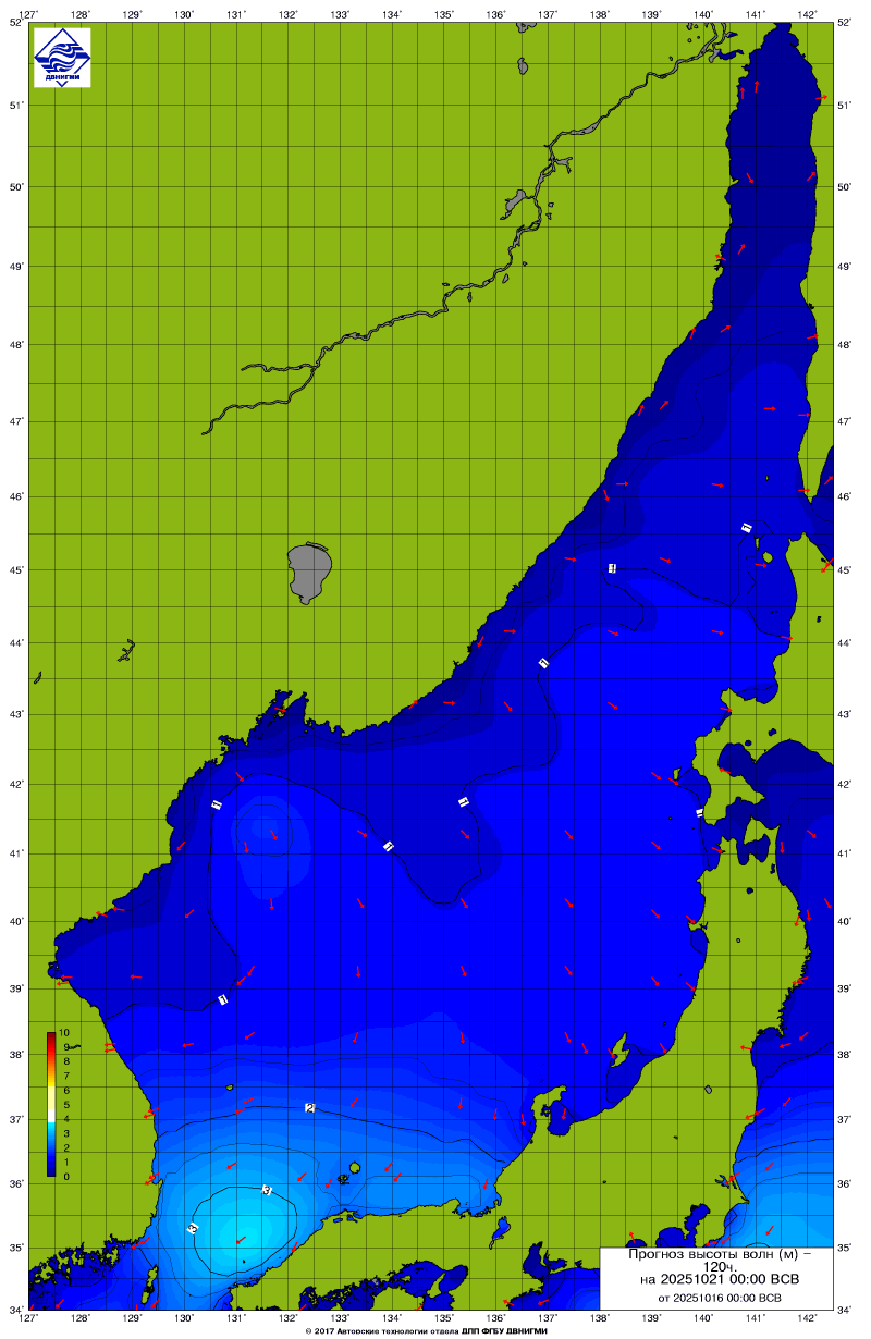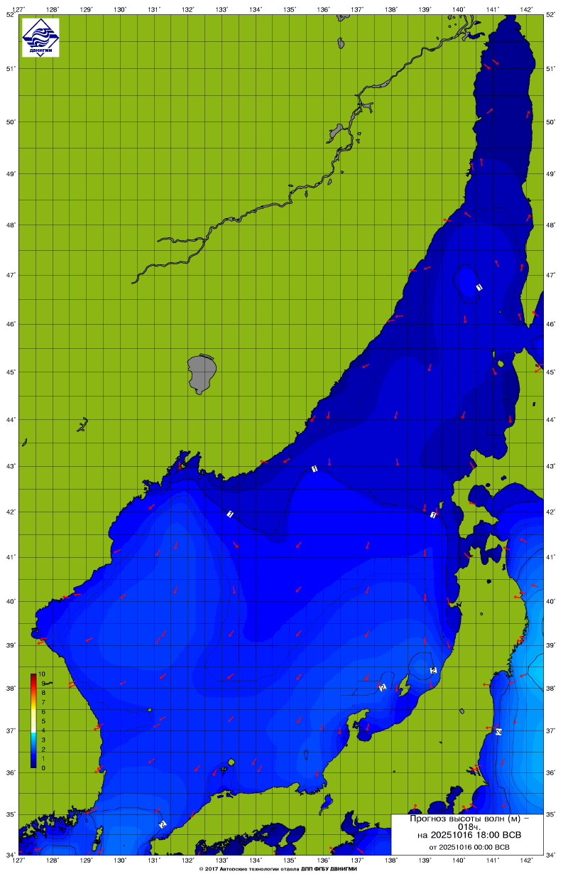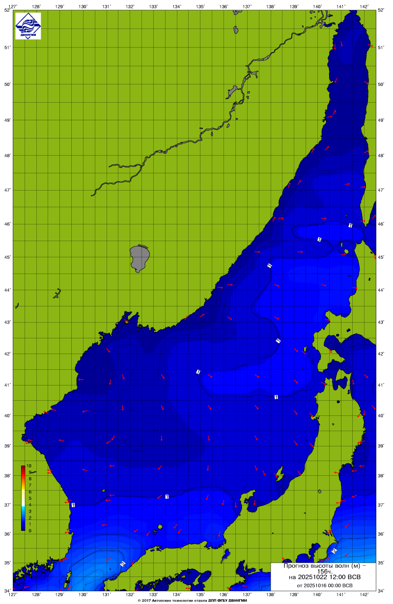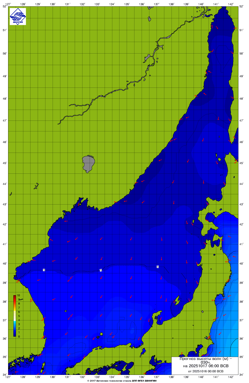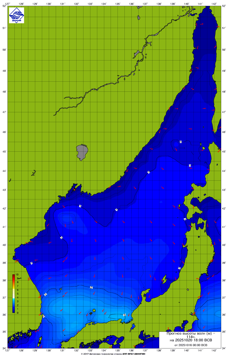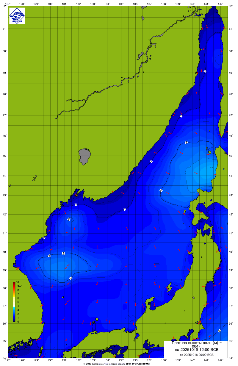 Прогноз на основе численной модели WW III является результатом научных исследований, проводящихся в ФГБУ "ДВНИГМИ".