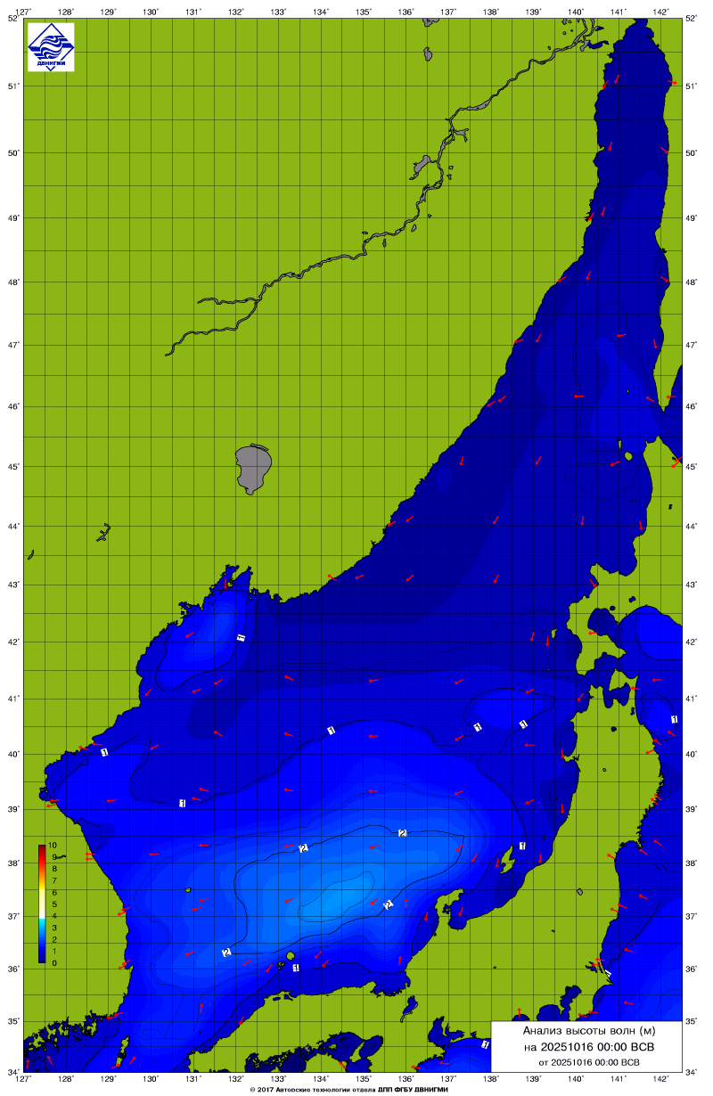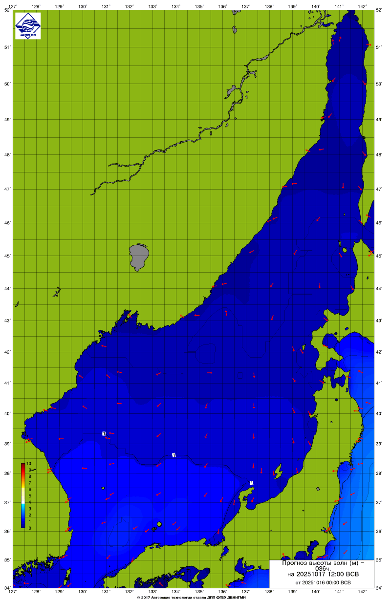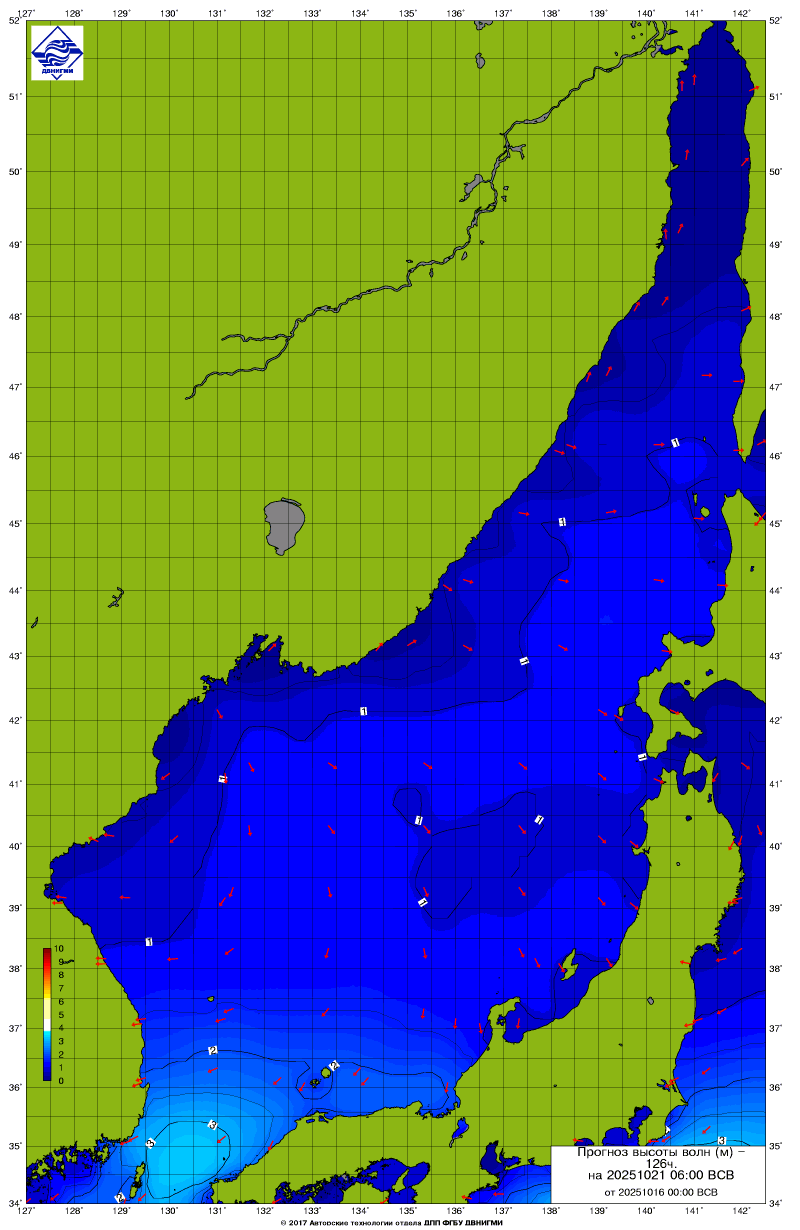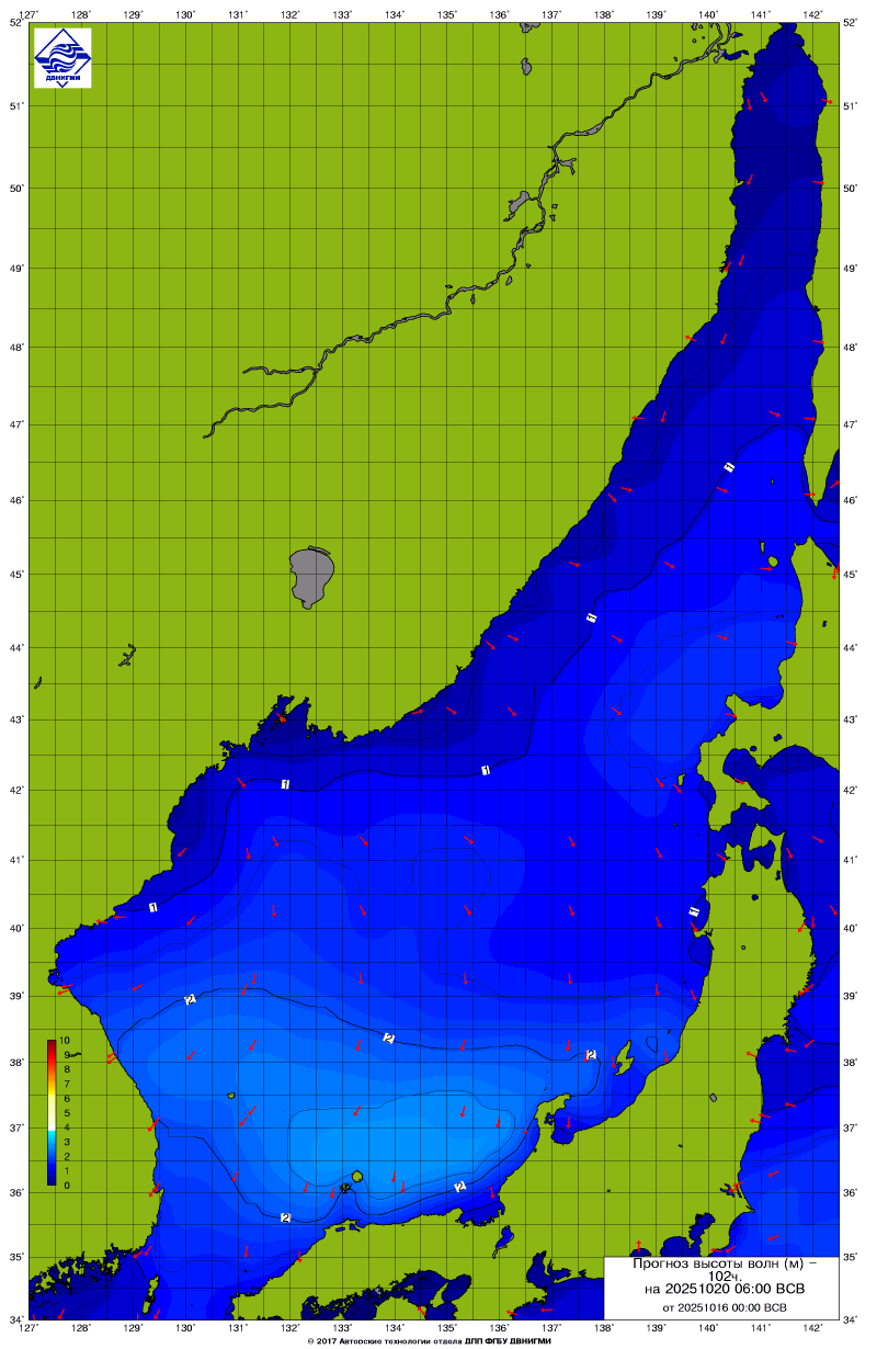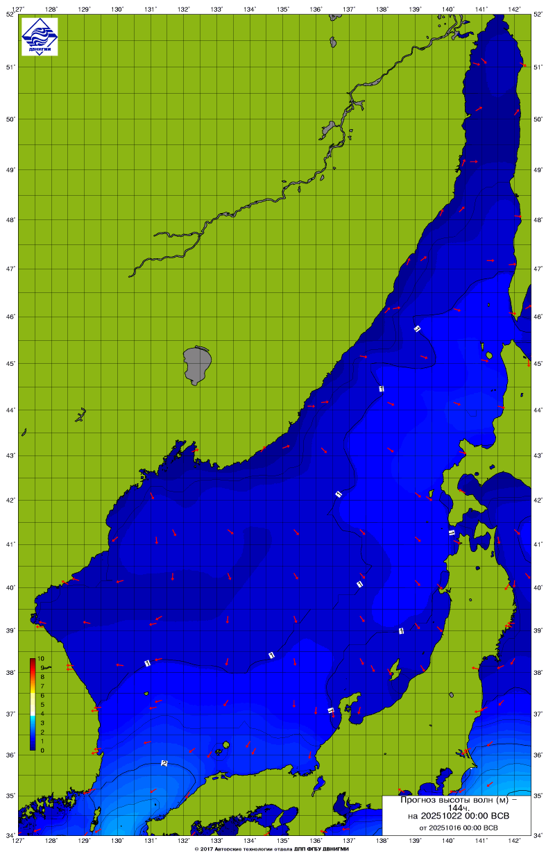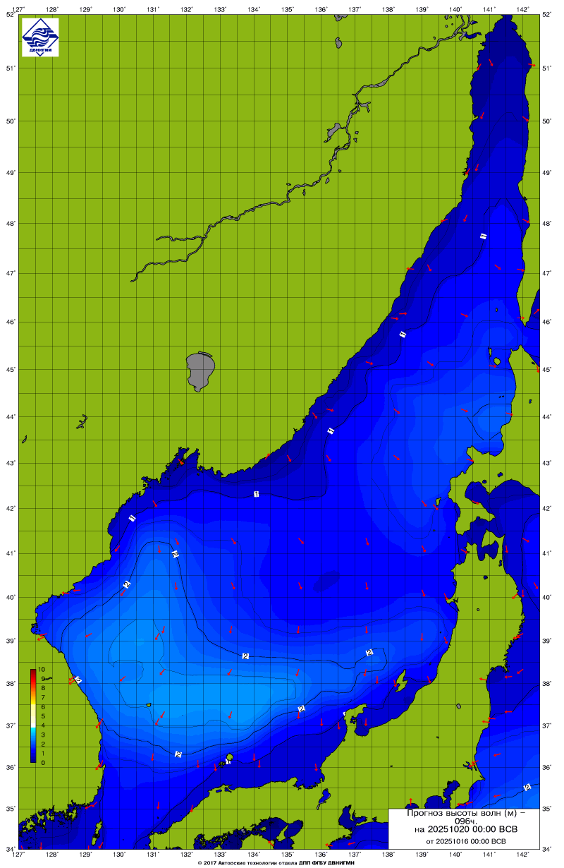 Прогноз на основе численной модели WW III является результатом научных исследований, проводящихся в ФГБУ "ДВНИГМИ".