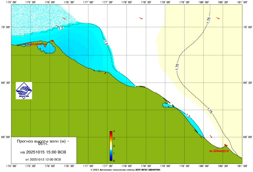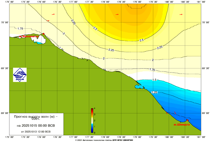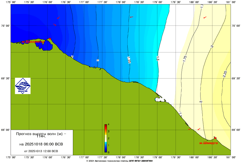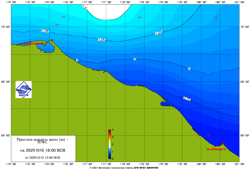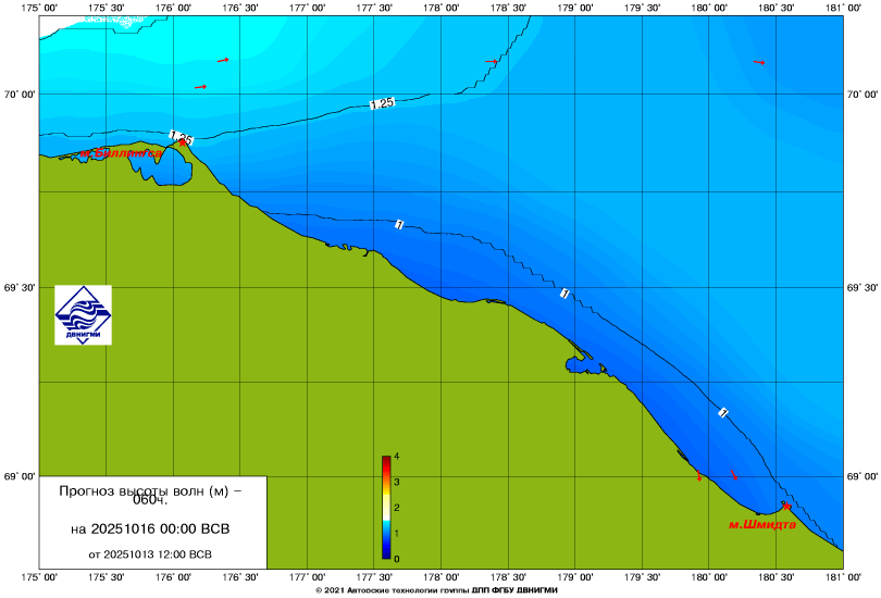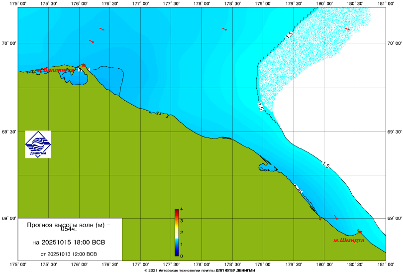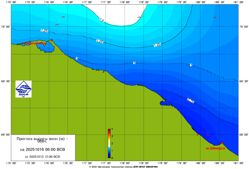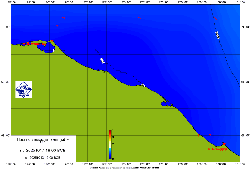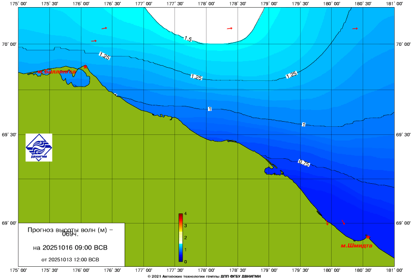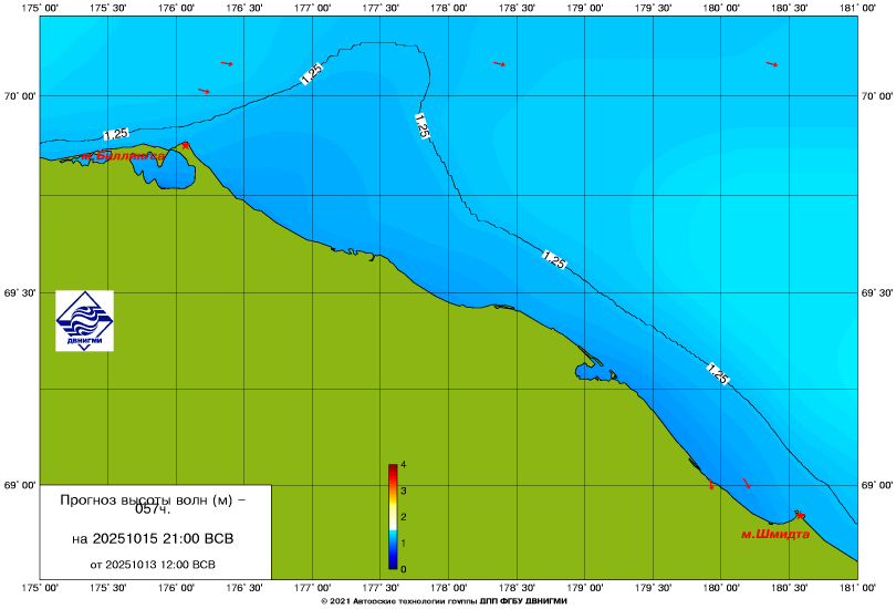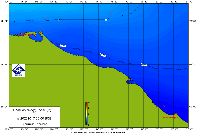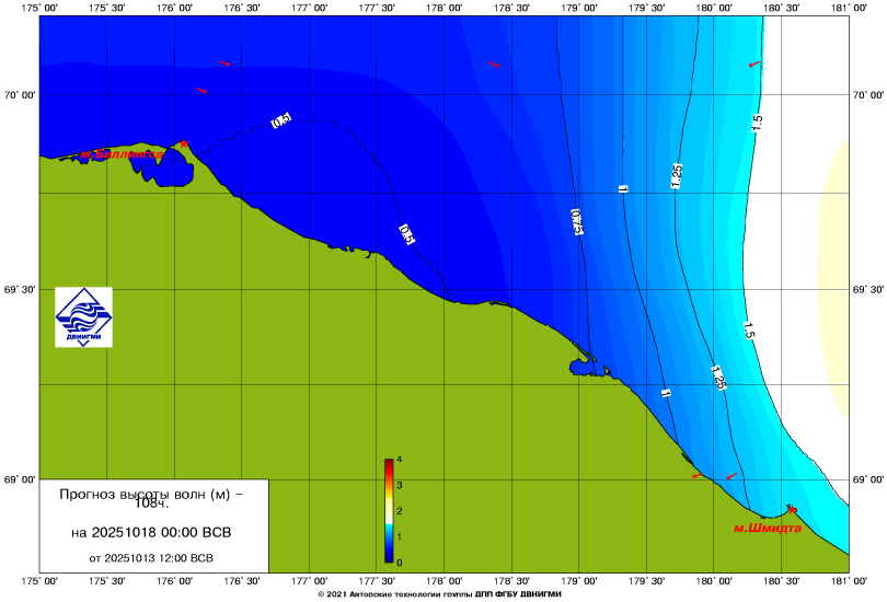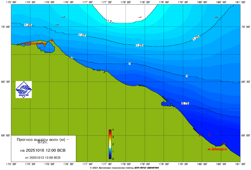 Прогноз на основе численной модели WW III является результатом научных исследований, проводящихся в ФГБУ "ДВНИГМИ".