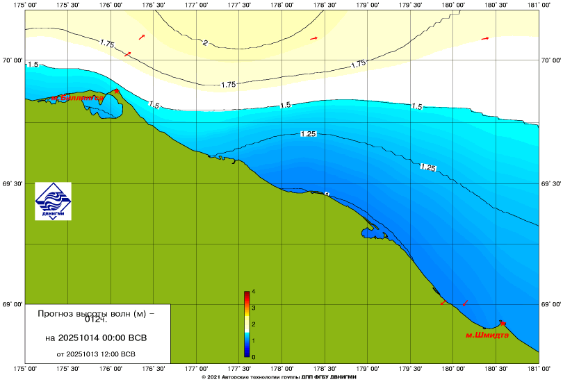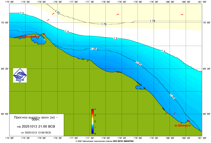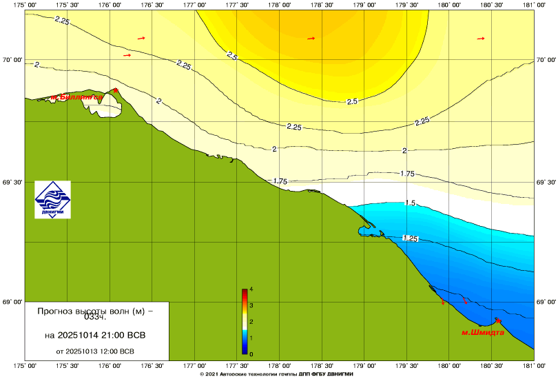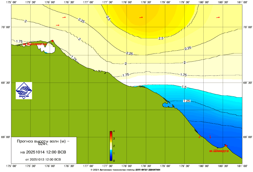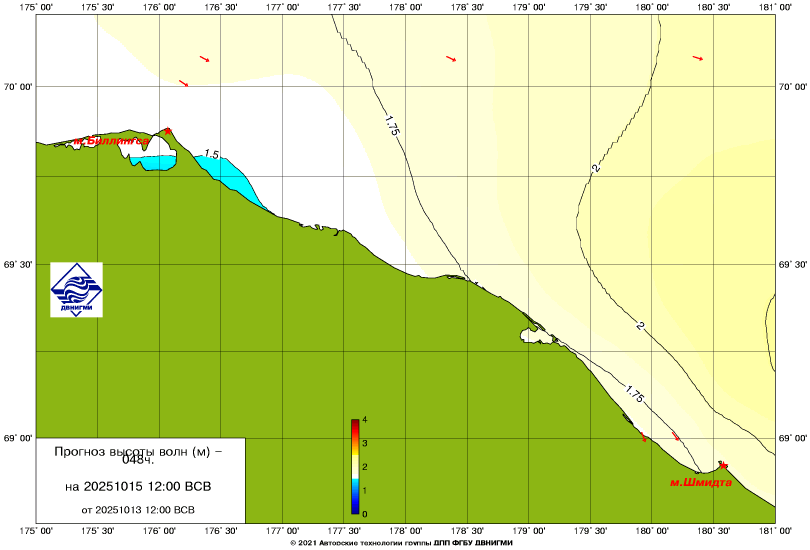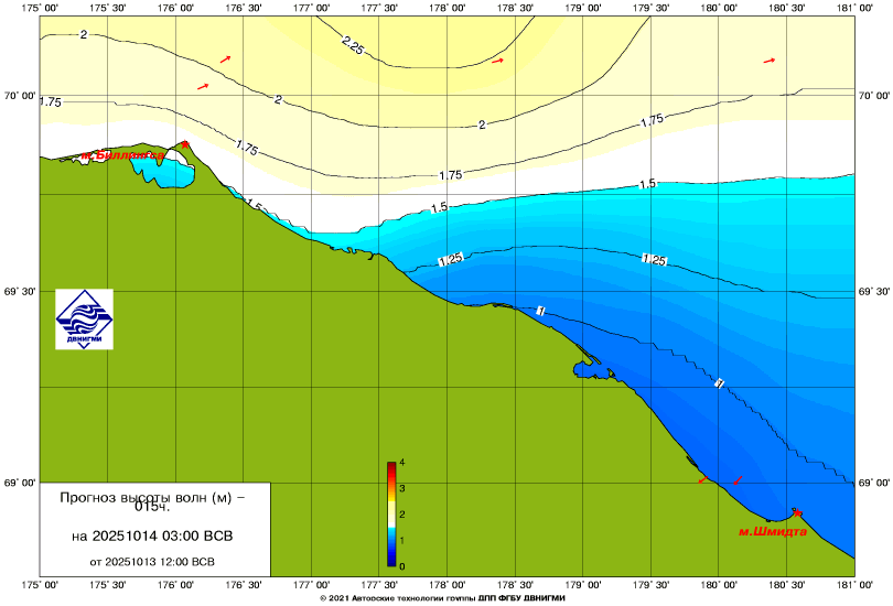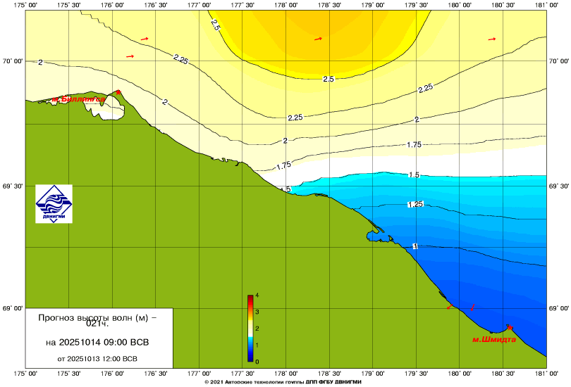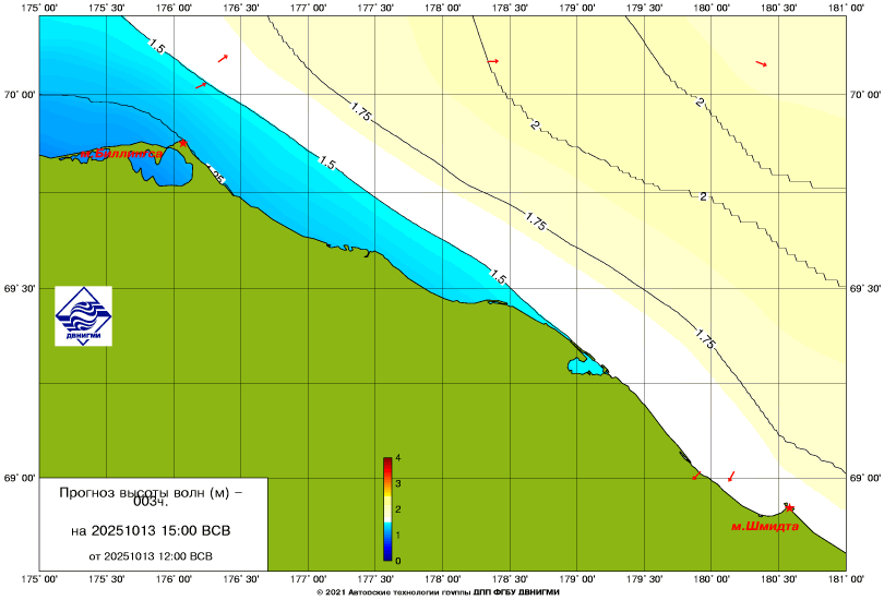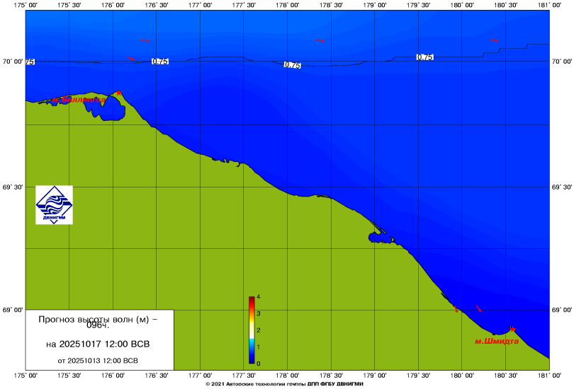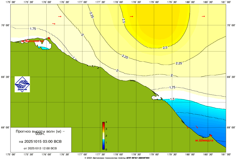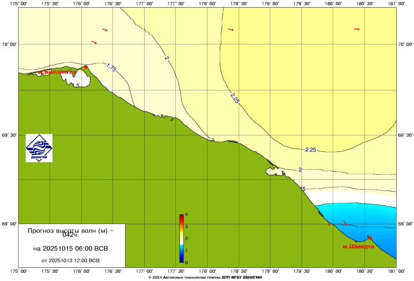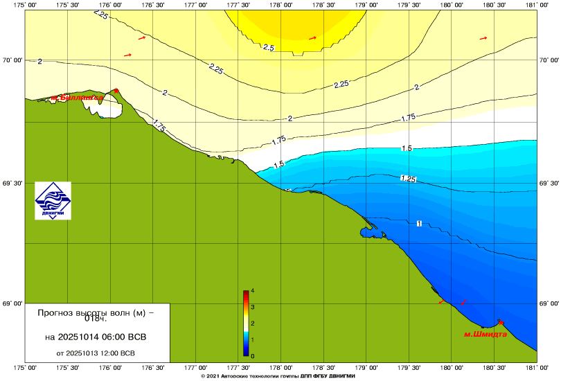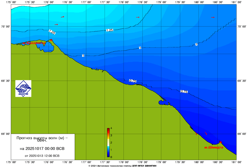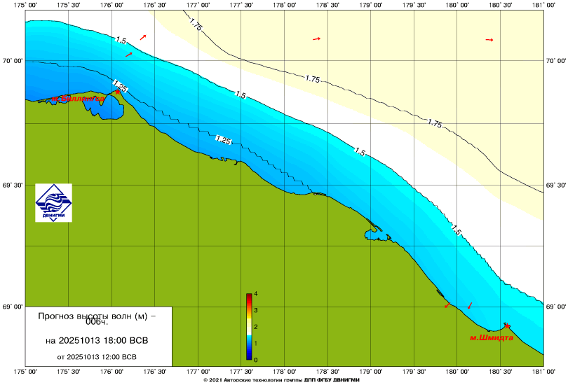 Прогноз на основе численной модели WW III является результатом научных исследований, проводящихся в ФГБУ "ДВНИГМИ".